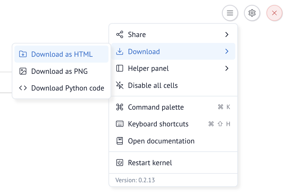 Esc(from cell editor) orCtrl+Esc/Cmd+Esc(when vim keybindings are enabled) - Exit command mode: